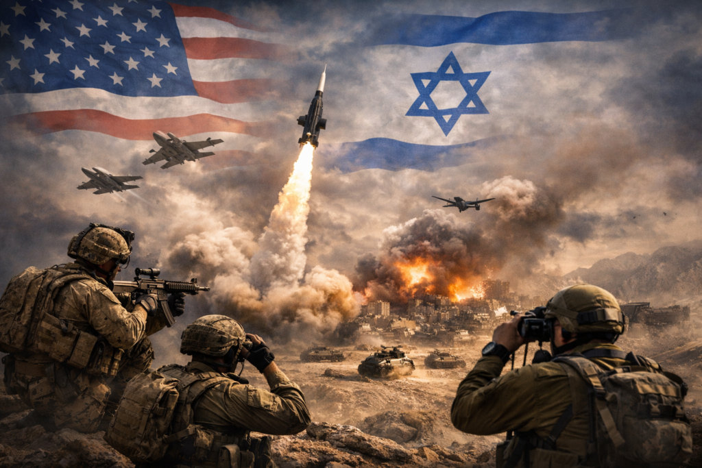 On 28 February 2026 the United States and Israel initiated Operation Epic Fury/Roar of the Lion against the Islamic Republic of Iran (hereafter the regime) following stalled nuclear negotiations. This campaign began with decapitation strikes that killed Supreme Leader Ali Khamenei and much of the senior leadership and destroyed parts of Iran’s nuclear and ballistic‑missile infrastructure. The operation’s stated goals include eliminating Iran’s nuclear and missile capabilities and toppling the regime through popular uprising, while avoiding a long U.S. ground war. Since airpower alone rarely produces regime change, the plan’s success depends on internal revolt supported by precision air and naval attacks. This report synthesizes open‑source intelligence from American, Israeli, Iranian and other regional sources to present a comprehensive situation report and scenario analysis.